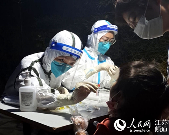 徐州醫(yī)護人員在進行夜間核酸采樣。受訪者供圖