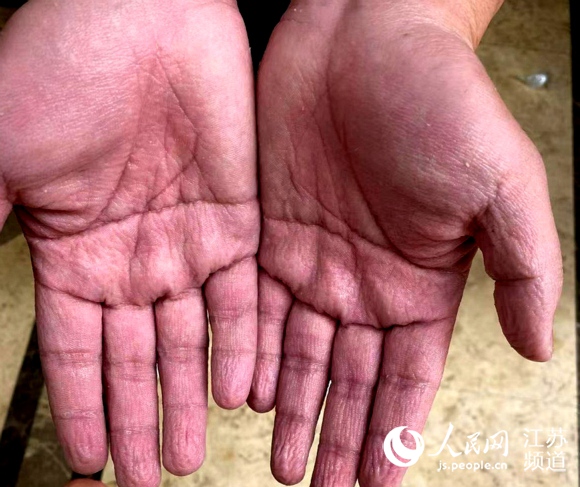 泡得發(fā)白的雙手。受訪者供圖