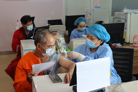 海事部門幫助船員開展疫苗接種。江蘇海事局供圖