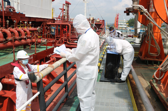 揚州海事局連續(xù)維護外輪“復(fù)興之路”“武進凱米”靠泊卸載7000余噸粗甘油,價值約2000萬元,為重點企業(yè)提供生產(chǎn)必需原材料;張家港海事局深化運用港航綜合信息服務(wù)平臺,助力進江國際航行船舶“直進直靠”,為防疫物資、電煤運輸船舶開辟“綠色通道”;南京、鎮(zhèn)江、南通、太倉海事局水上綠色綜合服務(wù)區(qū)提供“線上+線下”生活物資采購和船舶污染物接收“雙渠道”……全局黨員干部扎根基層、堅守一線,全力維護轄區(qū)水路交通不中斷。