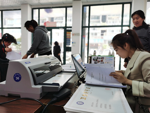 “流動審批”上門辦理衛(wèi)生許可證。黃楚鈺攝