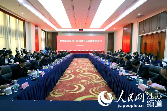 徐圩新區(qū)公用工程島項(xiàng)目百億銀團(tuán)簽約儀式。洋井石化供圖