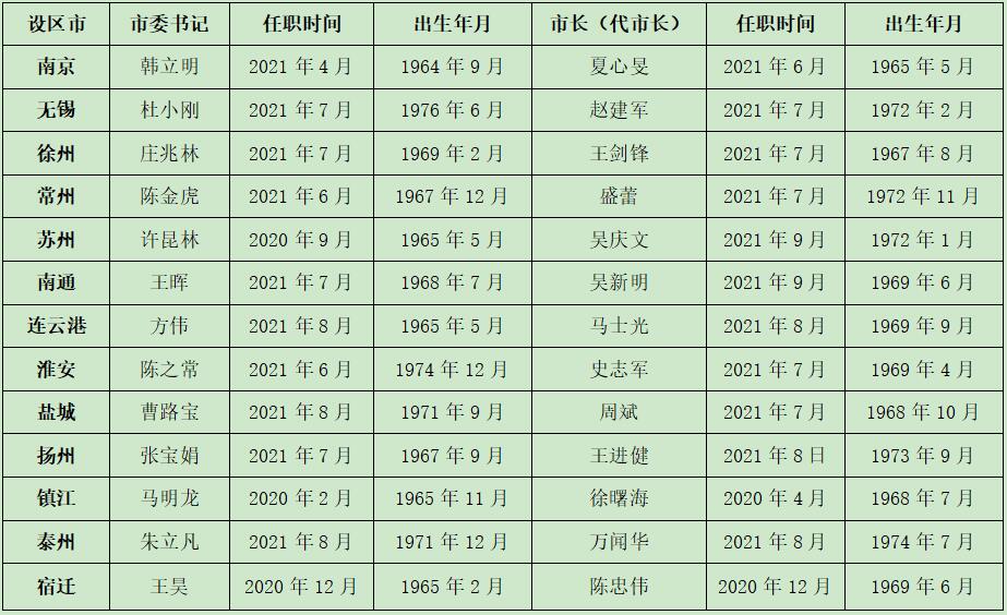 江蘇13個(gè)設(shè)區(qū)市書記市長(zhǎng)名單及任職時(shí)間