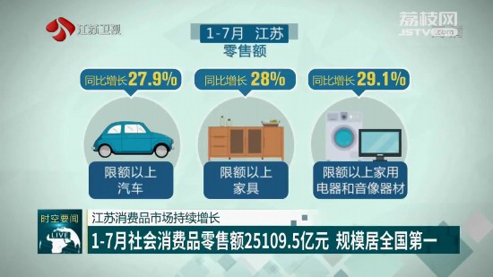 江蘇消費(fèi)品市場(chǎng)持續(xù)增長(zhǎng) 1-7月同比增25.5%