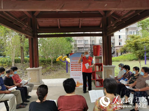 幸福街道“鄉(xiāng)賢名嘴”講黨史知識。徐亞萍攝
