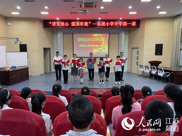 “請黨放心,強(qiáng)國有我!請黨放心,強(qiáng)國有我!”在江蘇省連云港市連云區(qū)海州灣小學(xué),學(xué)生們的青春誓言響徹校園。