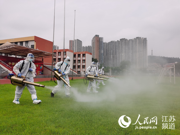 連云區(qū)各個(gè)中小學(xué)對公共場所進(jìn)行消毒消殺。連云區(qū)委宣傳部供圖