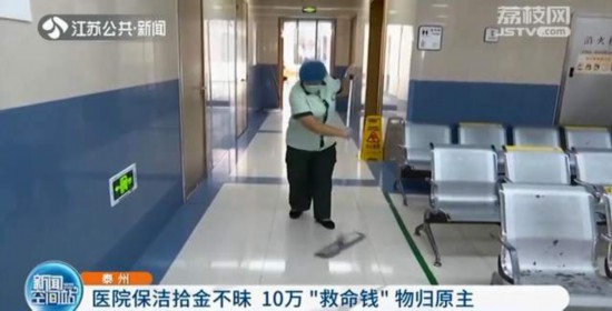 原標(biāo)題:泰州:醫(yī)院保潔拾金不昧 10萬“救命錢”物歸原主