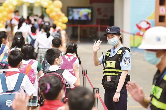 民警開啟新學(xué)期“護(hù)學(xué)模式”。通訊員 國武 本報(bào)記者 樂濤 攝