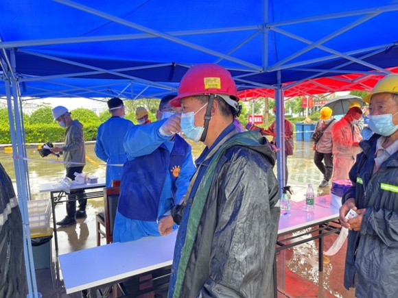 圖為工人上班前進(jìn)行測溫。上合物流園供圖