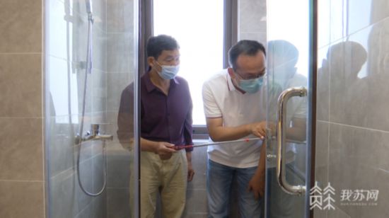 “收房時(shí),要仔細(xì)檢查邊邊腳腳有沒有劃痕,有沒有裂縫,每一個(gè)金屬件下面有沒有橡膠墊片,沒有墊片都不符合要求,會(huì)有安全隱患,把手要裝,合頁上要裝,根部有金屬的都要裝。另外,建議業(yè)主,在大塊的鋼化玻璃上面貼一層防爆膜,貼了防爆膜之后,玻璃即使碎裂了,也不會(huì)傷到人。 ”驗(yàn)房師蔡高升稱。