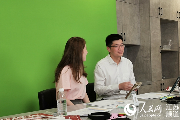 鼓樓區(qū)委常委、副區(qū)長郁健在直播間為鼓樓“打call”。人民網(wǎng) 馬曉波攝