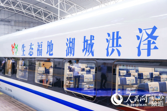 “生態(tài)福地 湖城洪澤”號(hào)高鐵從上海虹橋站首發(fā)。裴伍春攝