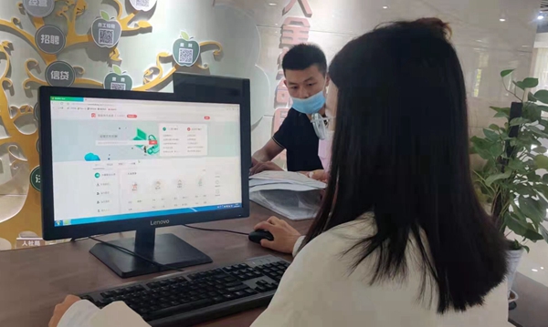 居民在宿豫區(qū)新莊鎮(zhèn)新生兒一件事窗口辦理業(yè)務(wù)。史征艷攝