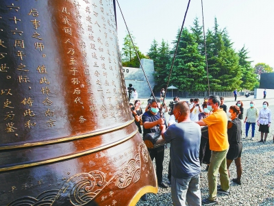 昨天,侵華日軍南京大屠殺遇難同胞紀念館舉行撞響和平大鐘儀式,銘記歷史、珍愛和平,緬懷遇難同胞。 孫中元攝