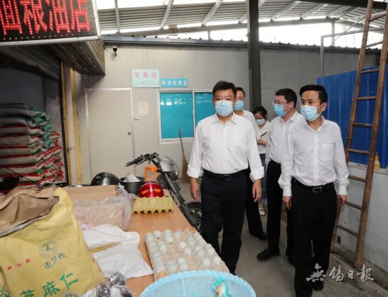 小市場(chǎng)連接大民生,小窗口折射大文明。在梁溪區(qū)某批發(fā)市場(chǎng)看到,經(jīng)營(yíng)活動(dòng)井然有序,但市場(chǎng)整體面貌比較陳舊。杜小剛來到多個(gè)攤位前檢查,詳細(xì)了解市場(chǎng)運(yùn)行管理情況,叮囑既要始終繃緊安全弦,抓細(xì)抓實(shí)常態(tài)化疫情防控措施,尤其要保障冷鏈?zhǔn)称钒踩挥忠谟布O(shè)施、服務(wù)模式等方面加快升級(jí)迭代,打造現(xiàn)代化批發(fā)市場(chǎng)標(biāo)桿。