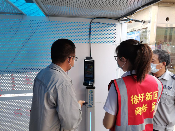 圖為鄰里中心功能型黨支部網(wǎng)格員指導產(chǎn)業(yè)工人使用智能門禁系統(tǒng)。徐圩新區(qū)供圖