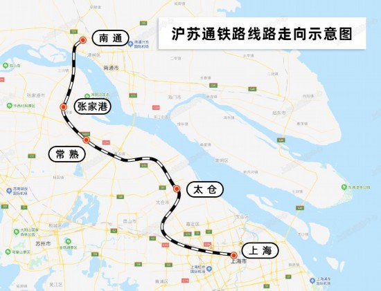 滬蘇通鐵路走向圖,今后可直接到浦東新區(qū)