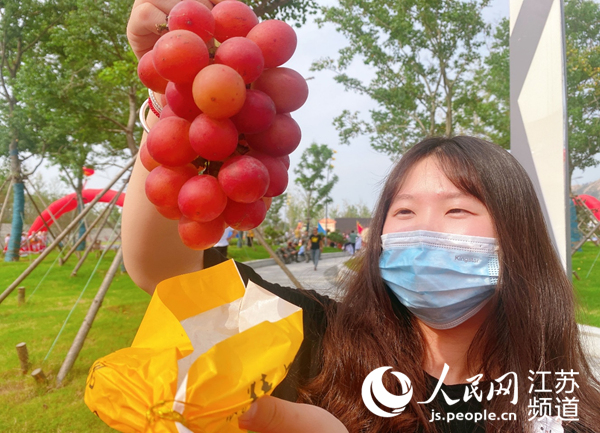 在錦屏鎮(zhèn)農(nóng)產(chǎn)品的展位前,鮮艷剔透、顆顆飽滿的葡萄也吸引了大批居民,“這幾年陶灣葡萄讓我們村農(nóng)民們的生活發(fā)生了翻天覆地的變化,我們確保從技術(shù)到銷售給農(nóng)民們提供‘一條龍’幫扶,讓產(chǎn)業(yè)振興帶動農(nóng)民致富。”錦屏鎮(zhèn)陶灣村黨總支書記、村委會主任卞廣生說道。