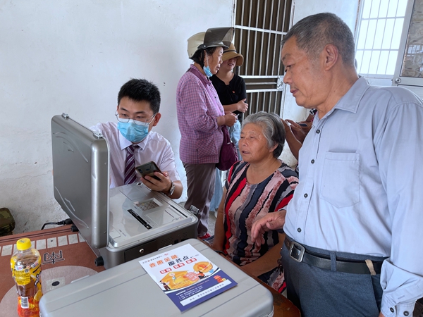 紫金農(nóng)商銀行工作人員為社區(qū)居民上門辦理社?。周正攝