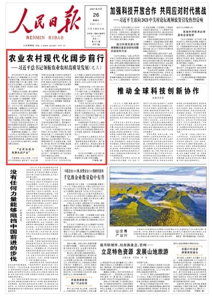 《 人民日?qǐng)?bào) 》2021年09月26日 第 01 版 版面截圖