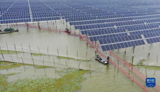 江蘇省宿遷市泗洪縣充分利用天崗湖荒灘、水面等自然資源,建成了1.5萬畝“漁光互補(bǔ)”產(chǎn)業(yè)基地,實(shí)行“岸邊風(fēng)力發(fā)電、水上光伏發(fā)電、水下養(yǎng)魚”綜合利用,畝均收入3000多元。此外,通過“公司+合作社+農(nóng)戶”運(yùn)作模式,幫助200余戶低收入戶就業(yè),人均年增加勞務(wù)收入萬元以上。
