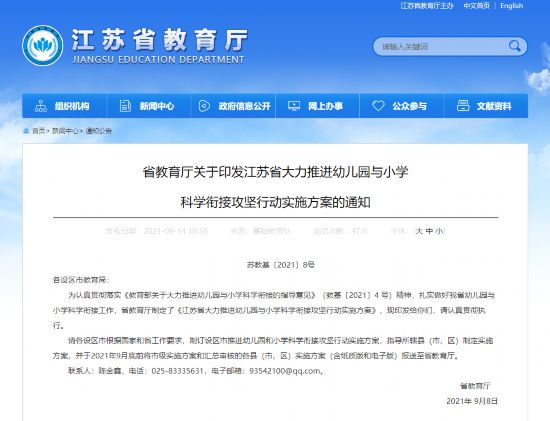 江蘇省教育廳發(fā)文:推進(jìn)幼兒園與小學(xué)科學(xué)銜接攻堅行動