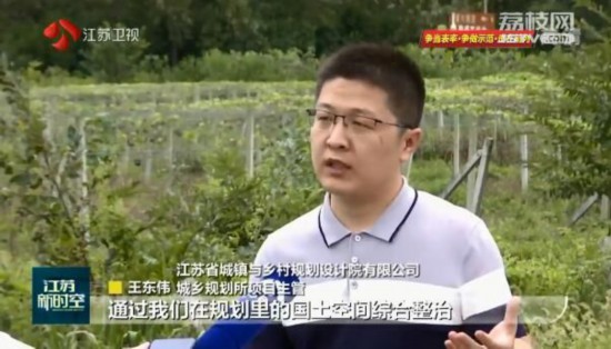 江蘇臺記者郭奉銘說:“這里是淮安市盱眙縣陡山村百草園,在規(guī)劃師們的幫助下,這片原先接近荒廢的土地已經(jīng)是蝶變成為了種植、觀光、采摘于一體,擁有黃桃、獼猴桃等特色種植產(chǎn)業(yè)的金牌產(chǎn)業(yè)園,每年每畝土地產(chǎn)出效益增加近8000元。”