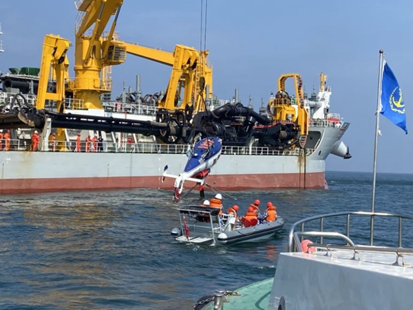 事故發(fā)生后,連云港海上搜救中心立即啟動應(yīng)急預(yù)案,通知東海救助局連云港基地、連云港海事局、連云港市農(nóng)業(yè)農(nóng)村局協(xié)調(diào)力量前往事發(fā)水域參與搜救,播發(fā)人員落水航行安全信息,協(xié)調(diào)附近商漁船參與救助,現(xiàn)場共有十余艘船艇和一架直升機參與搜尋。10點左右,附近外輪“海神星”輪發(fā)現(xiàn)并釋放救生艇救起3名落水人員。11點30分左右,“長鯨7”輪將墜海直升機吊起,機艙內(nèi)發(fā)現(xiàn)1人。據(jù)悉,失事直升機隸屬某公司連云港停機點,當(dāng)日8點28分,從停機點飛往連云港主航道10號浮附近執(zhí)行引航任務(wù)時緊急迫降落水。