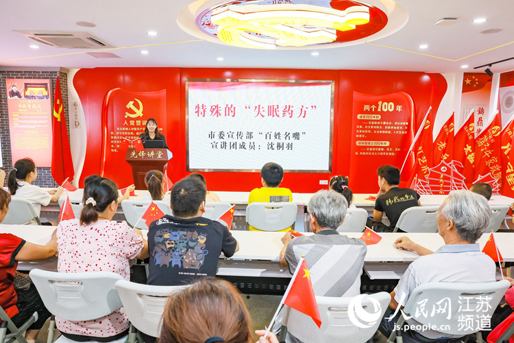 “靖聽理響”宣講團成員何鈺丹是靖城街道江華社區(qū)的一名工作人員。在10月1日的宣講中,她面對的宣講群眾就是江華社區(qū)的普通居民們。何鈺丹的宣講既有對“延安精神”的弘大闡釋,也有社區(qū)工作人員為民解憂的細節(jié)故事,聲情并茂,令人回味。宣講員沈桐羽在濱江新區(qū)辦事處江陽社區(qū)以《特殊的“失眠藥方”》為題,宣講了江陽社區(qū)黨委書記劉旭明懷揣“民生賬本”,真情為民服務(wù)的故事,在場的居民們連連稱贊:“我們書記好樣的!”