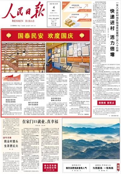 《人民日報》 2021年10月04日 第 01 版 版面截圖