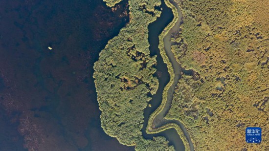 這是10月1日在新疆博斯騰湖拍攝的美景(無人機(jī)照片)。