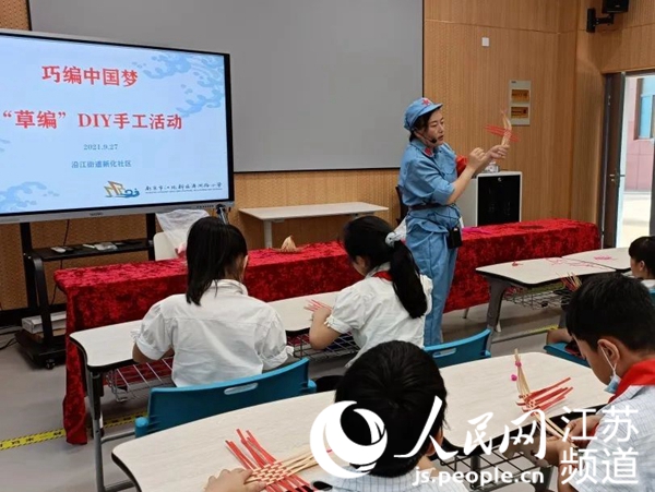 新化社區(qū)舉行迎國慶草編DIY手工活動。沿江街道供圖