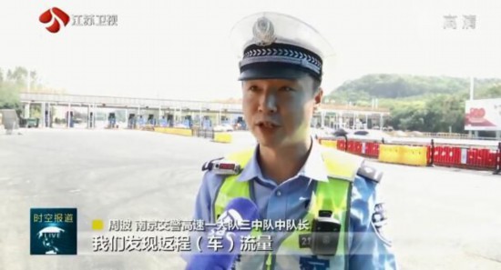 南京交警高速一大隊(duì)三中隊(duì)中隊(duì)長(zhǎng)周波說(shuō):“根據(jù)收費(fèi)站給我們的數(shù)據(jù),我們發(fā)現(xiàn)返程車流量較平時(shí)增加了20%,這也就預(yù)計(jì)著返程高峰已經(jīng)提前到來(lái)!