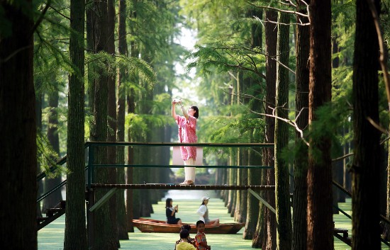 游客在淥洋湖濕地公園樂(lè)享假期。 孟德龍 攝