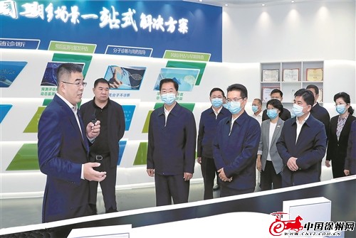 莊兆林、王劍鋒等在港務(wù)區(qū)觀摩坐落在永嘉科技園內(nèi)的闊然醫(yī)學(xué)檢驗實驗室區(qū)域性檢驗中心項目。徐報融媒記者 齊浩 孫井賢 攝