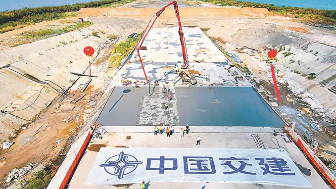 圖為9日,太湖隧道項(xiàng)目中交三航局CX-WX2標(biāo)最后一節(jié)頂板順利澆筑完成。 通訊員 史瑞新 本報(bào)記者 趙亞玲 攝