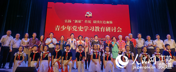 人民網(wǎng)淮安10月10日電 (周夢嬌)為抓好青少年黨史學習教育,著力講好黨的故事,讓紅色基因、革命薪火代代傳承,10月9日上午,由中共淮安區(qū)委宣傳部、淮安區(qū)教體局、淮安市新安小學共同主辦的青少年黨史學習教育研討會正式拉開帷幕。活動現(xiàn)場,新安旅行團老團員、老團員家屬代表來到母;窗彩行掳残W,為孩子們講述烽火年代新安旅行團的英雄故事、革命故事。