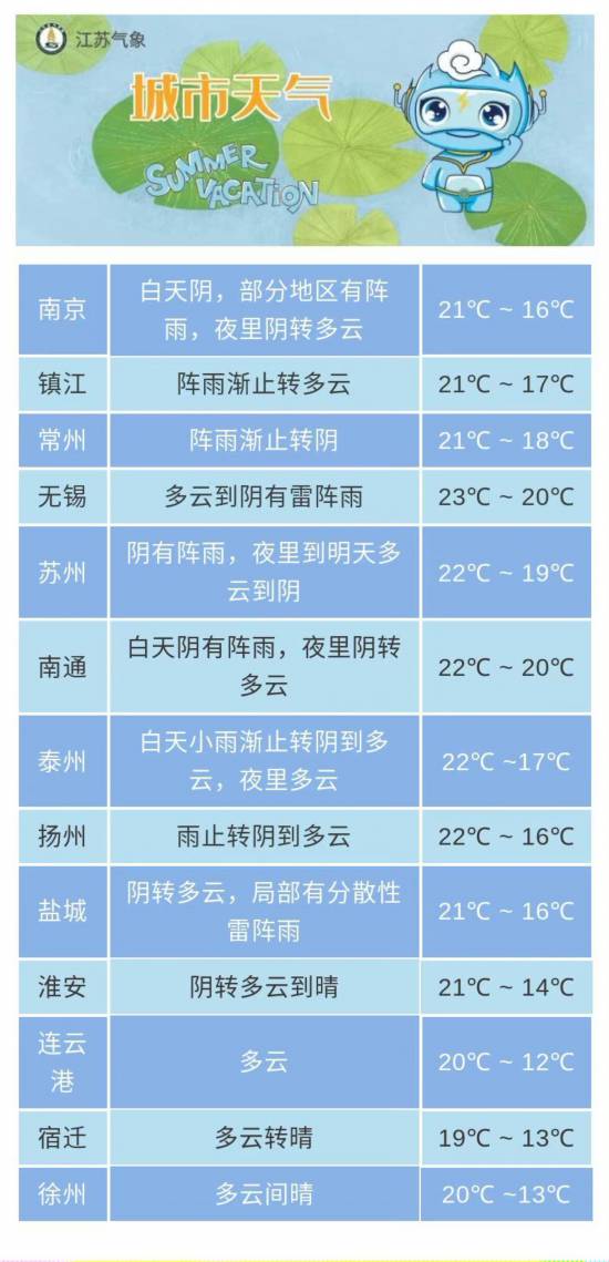 16日 蘇南地區(qū)小雨轉(zhuǎn)陰到多云,其它地區(qū)陰轉(zhuǎn)多云。
