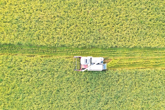 淮安洪澤雜交水稻成熟 農(nóng)民搶抓農(nóng)時收割