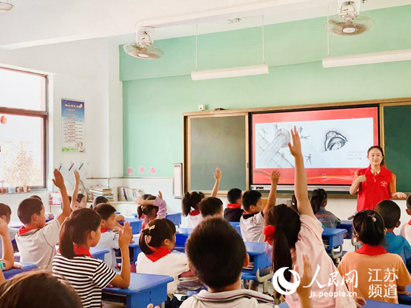 志愿者來到關廟中心學校為孩子們講解紅色繪本《大鍋和小郭》。王遠攝