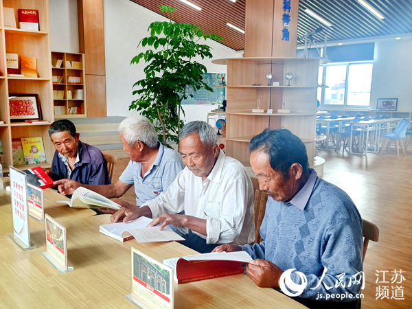 社區(qū)居民在小鎮(zhèn)書吧里閱讀紅書。何賽攝