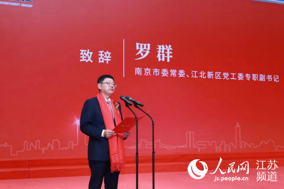 南京市委常委、江北新區(qū)黨工委專職副書記羅群致辭。江北新區(qū)供圖