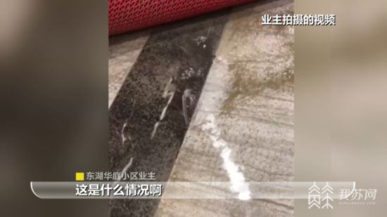 業(yè)主拍攝的一段視頻顯示,東湖華庭小區(qū)的地下車庫有一股水流滲出,如同“噴泉”。