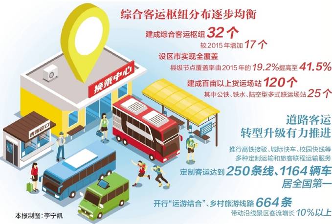 “綜合客、貨運(yùn)樞紐‘無(wú)縫化’‘零換乘’‘一體化’‘多式聯(lián)運(yùn)’等先進(jìn)理念和模式已深入人心,客、貨運(yùn)樞紐規(guī)劃建設(shè)工作逐步邁入正軌!笔〗煌ㄟ\(yùn)輸廳副廳長(zhǎng)汪祝君說。綜合客、貨運(yùn)樞紐作為各種運(yùn)輸方式集成融合的中樞,以及區(qū)域、城市和城市群之間的有機(jī)銜接,是現(xiàn)代綜合交通運(yùn)輸體系的重要標(biāo)志。5年中,江蘇綜合客運(yùn)樞紐分布逐步均衡,建成綜合客運(yùn)樞紐32個(gè),較2015年增加17個(gè),設(shè)區(qū)市實(shí)現(xiàn)全覆蓋,縣級(jí)節(jié)點(diǎn)覆蓋率由2015年的19.2%提高至41.5%。建成百畝以上貨運(yùn)場(chǎng)站120個(gè),其中公鐵、鐵水、陸空型多式聯(lián)運(yùn)場(chǎng)站25個(gè)。同時(shí),推行高鐵接駁、城際快車、校園快線等多種定制運(yùn)輸和旅客聯(lián)程運(yùn)輸服務(wù),定制客運(yùn)達(dá)到250條線、1164輛車,居全國(guó)第一。