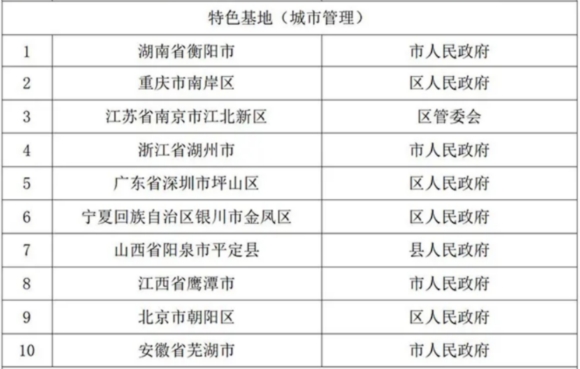 國家智能社會治理特色基地(城市管理)名單。圖片來源:網(wǎng)信中國
