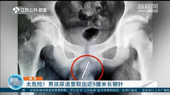 南京市兒童醫(yī)院泌尿外科主任郭云飛說:“這個孩子是因為尿痛,小便有血,實際上可能也有了一段時間了。確實是自己覺得實在是受不了了才到醫(yī)院來。拍了片子才看到這里有一根針,很長而且也很深!
