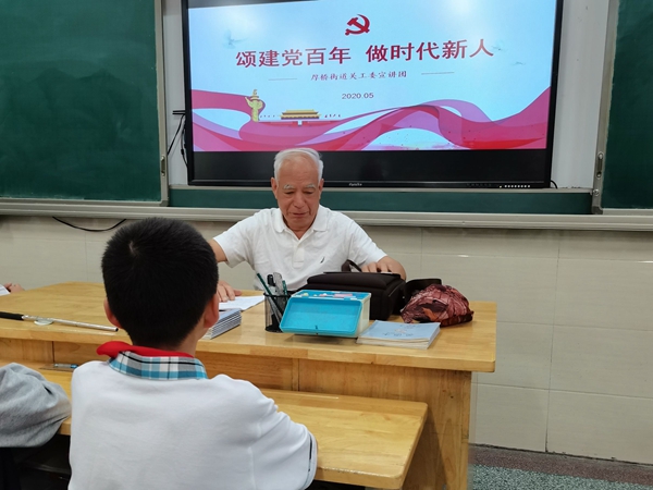 王祥發(fā)老人在給學(xué)生做宣講。周丹攝