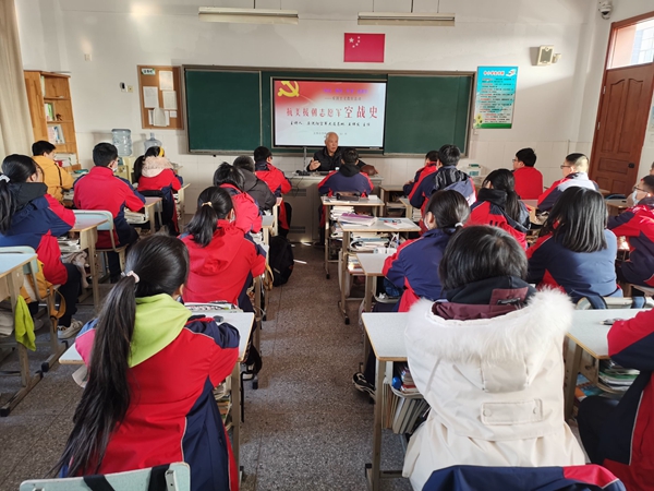 在無錫市錫山區(qū)厚橋中小學(xué),經(jīng)?梢砸姷揭晃荒赀^七旬、頭發(fā)花白的老人,站在講臺上,興致勃勃地給學(xué)生們講述著空軍戰(zhàn)斗英雄張積偉在抗美援朝戰(zhàn)場上,以頑強(qiáng)的意志擊落美軍王牌飛行員的故事。講到奮勇殺敵處,老人都講得格外投入,學(xué)生也聽得津津有味。