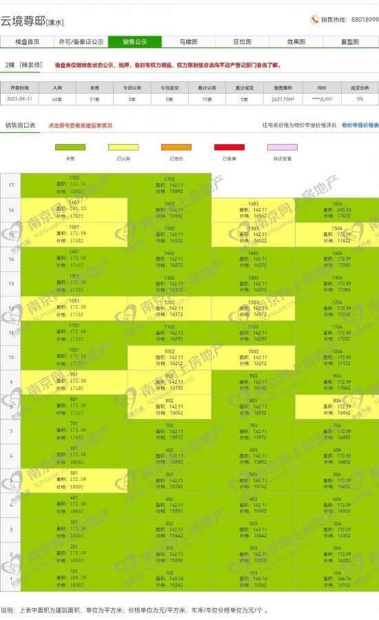 那么,該樓盤銷售情況究竟如何?記者查詢南京網(wǎng)上房地產(chǎn)數(shù)據(jù)后發(fā)現(xiàn),備案名為云境尊邸也就是天安云境這家樓盤,早在2021年9月7日領取了2、8、15號樓的預售許可,共167套房源,截至記者發(fā)稿時止,總認購套數(shù)52套,未售房源115套,實際認購僅三成左右。此外,大部分戶型除4樓以下和頂層房源外,還有大量其他樓層房源可售。